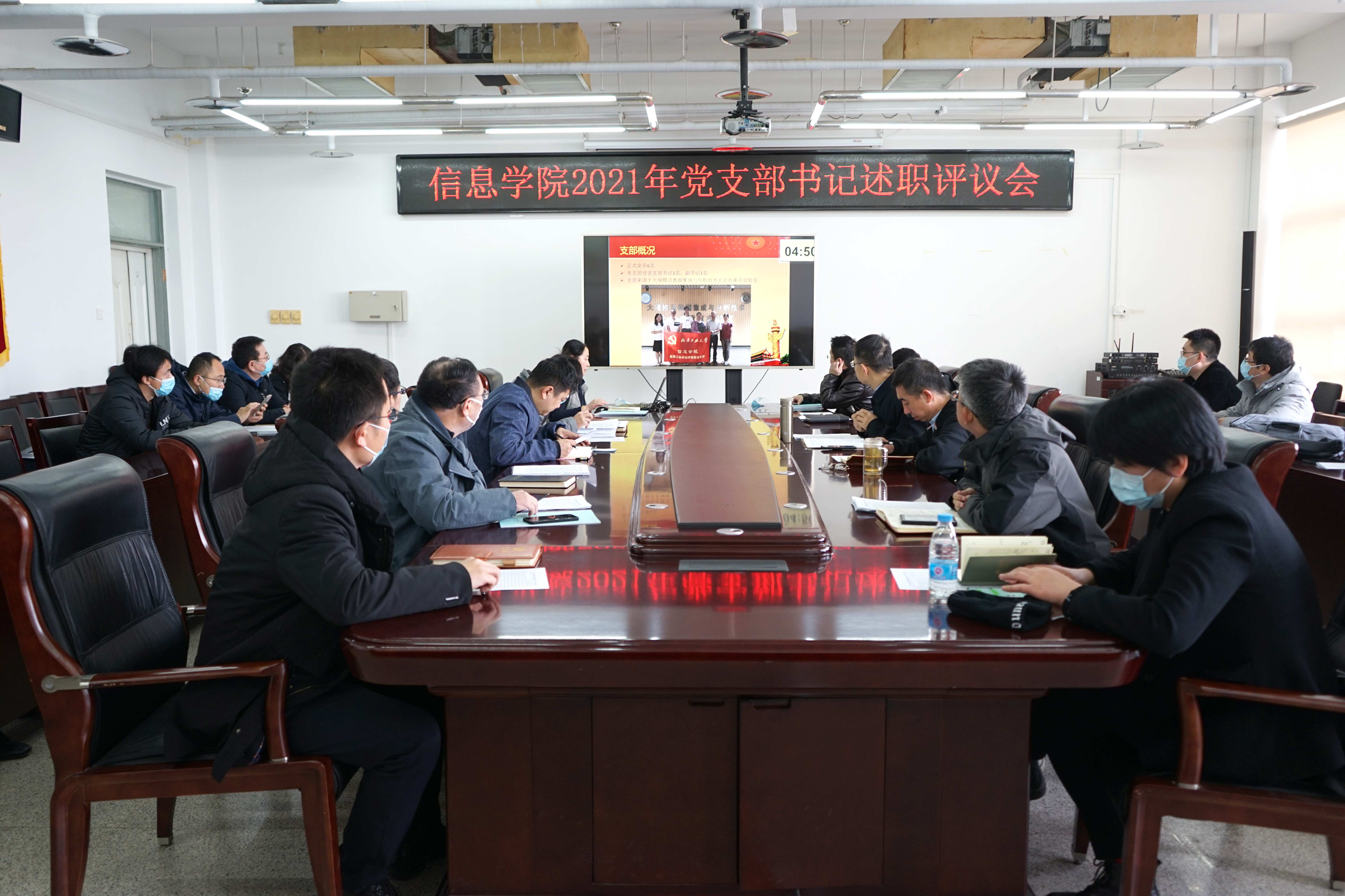 王月海书记在总结中指出各党支部党建工作针对问题有改进、组织生活有分工、理论学习有考核、党员管理有量化、特色工作有凝练。他肯定了各党支部在党建各项工作中的各项成绩,认为此次会议突出了党支部书记履行第一责任人职责情况和推进党支部党建重点任务落实情况,既是一次述职汇报,更是一次学习交流。他在部署2022年工作时强调,各支部要抓好规范化建设奠定发展基础,发挥组织作用筑牢党建根本,严格党员管理强化制度保障,培育特色品牌塑造党建之魂。他希望各党支部继续围绕中心,服务大局,发挥作用,提质增效,扎实做好本年度各项党建工作,深入促进党建与业务有机融合,全面推进课程思政建设,持续推动全面从严治党向基层延伸,以优异的成绩迎接党的二十大胜利召开。