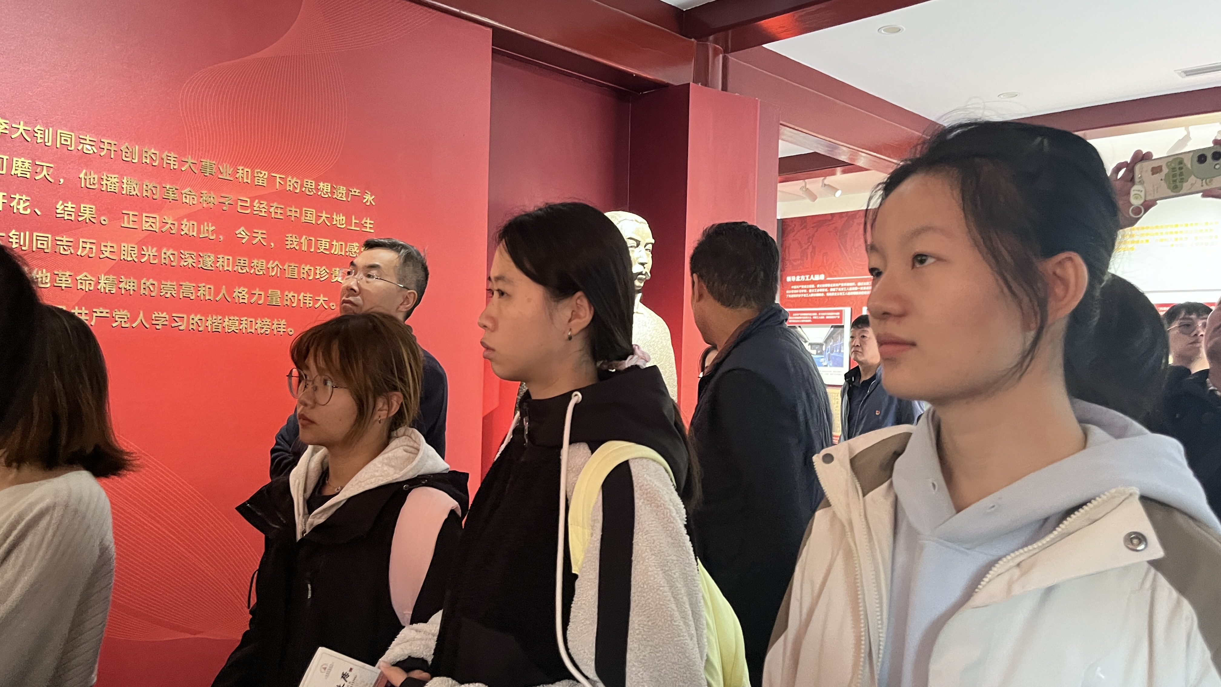 演出最后,李大钊的扮演者带领其他演员共邀现场全体观众齐唱《国际歌》,这不仅是一场演员与观众的齐唱,更是一次跨越历史的革命思想的齐唱,更是一次革命精神传承与弘扬的齐唱,歌声回荡在耳边,激荡人心,让人内心久久不能平静。同行参观的刘显鑫同学说:“从来没想到对于革命精神的学习能以这样新颖的形式进行,不管是演员们对故事细节的精彩还原,还是与现场观众的互动,都让我眼前一新,也加深了对革命前辈们的崇敬之情”。